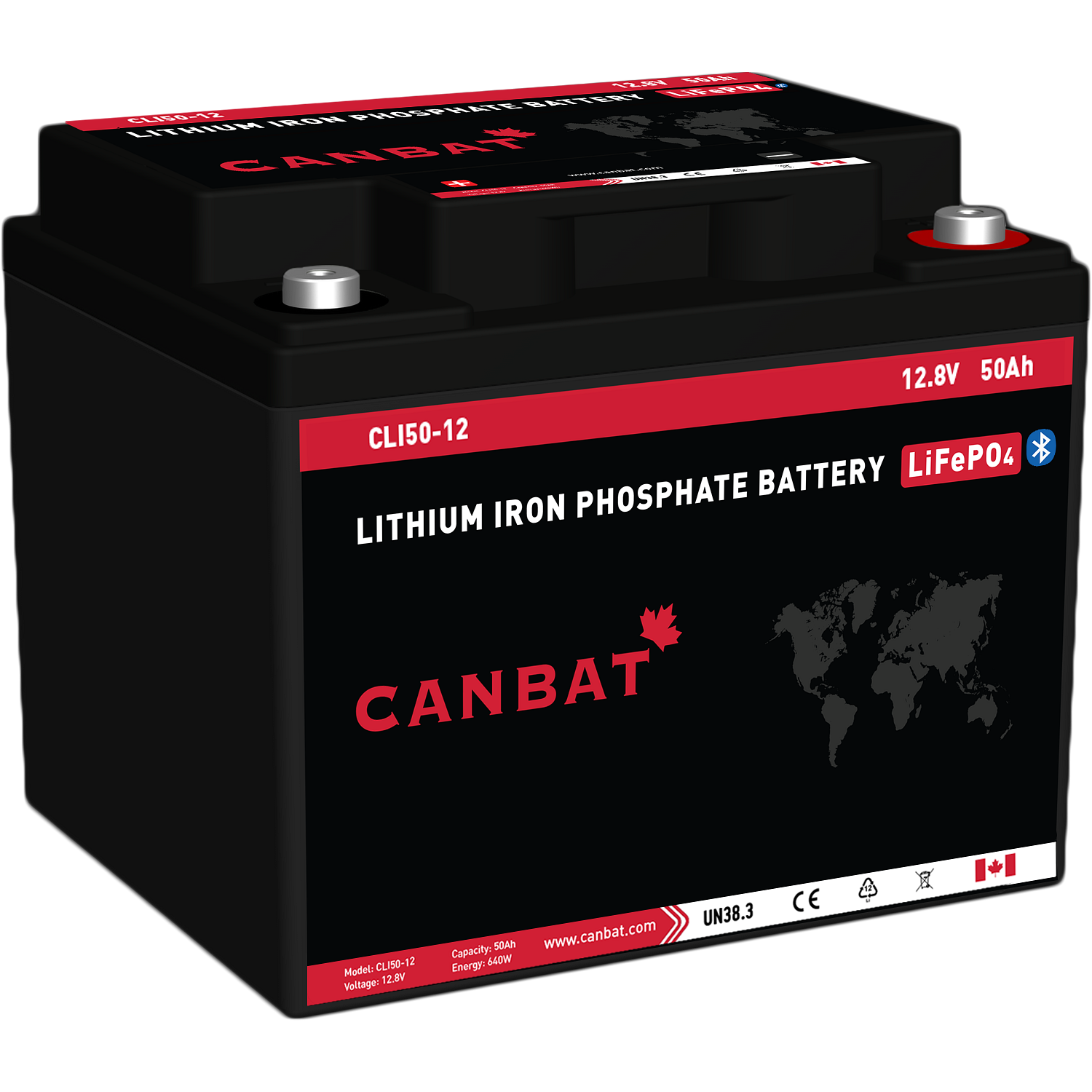 12V 50Ah Lithium Iron Phosphate batteries (LiFePO4) are designed to outperform traditional sealed lead-acid batteries in various residential and commercial power applications. This includes recreational vehicles (RV), electric wheelchairs, solar energy, boats, power equipment and more. Lithium batteries offer safe and worry-free energy in a lighter weight solution. Compared to sealed lead-acid batteries and other types of lithium batteries, Canbat lithium iron phosphate batteries are designed with LiFePO technology to offer significant advantages, including improved recharge and discharge efficiency, temperature protection, a higher life cycle and the ability to deep cycle or deep discharge while maintaining power. 12V 50Ah LiFePO4 batteries are generally more expensive than the counterpart sealed lead-acid batteries, but they are actually more cost-effective in the long term because they offer an extended life span of over 10 years.