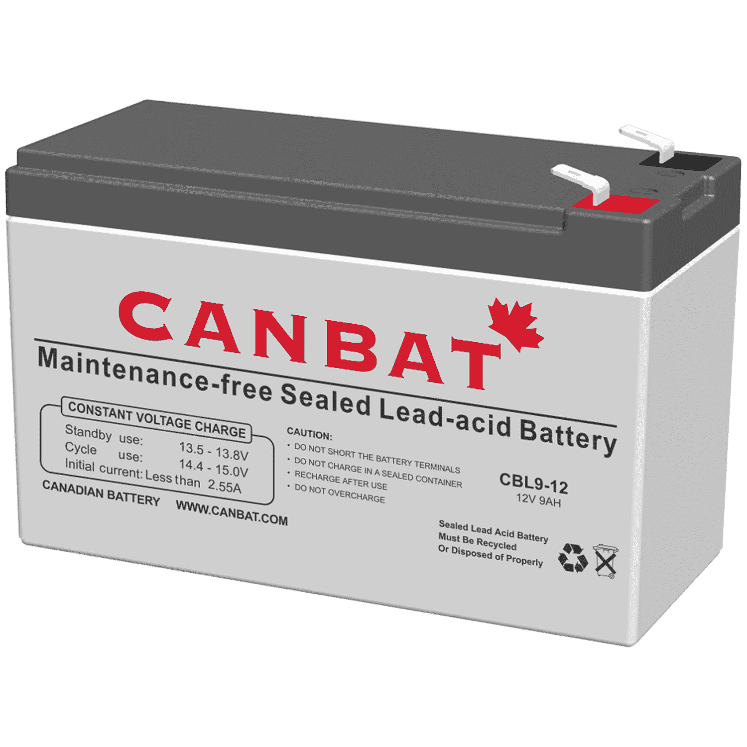 The Canbat CBL9-12 battery is a 12V 9Ah rechargeable sealed lead-acid (SLA) battery with T2 Terminals. This 12V SLA battery is designed for general purpose and standby applications such medical devices, security systems, fire systems, emergency lighting and much more. Canbat 12V 9Ah SLA battery is engineered with Absorbent Glass Mat (AGM) technology offering superior performance and high reliability. AGM batteries are valve-regulated and spill-proof, allowing safe operation in any position. This 12V 9Ah SLA battery also offers unbeatable power to volume ratio yielding greater energy density.